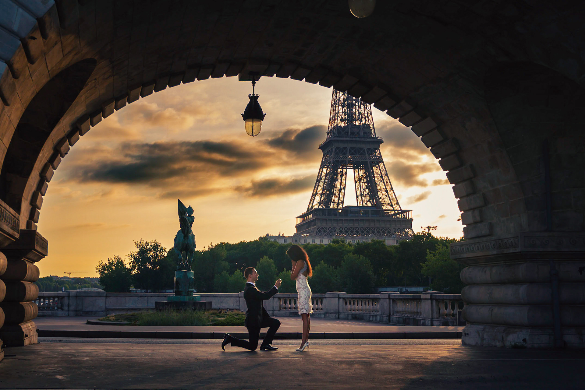 Surprise Proposals under the Eiffel Tower, Paris, France